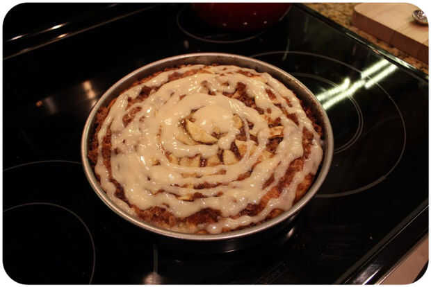 A primera vista, usted puede pensar que esto es un rollo de canela. No lo es. Se trata de una pizza de postre verdadero. Y lo que realmente hace especial es la incorporación de manzanas de granny smith. Por lo que básicamente podría llamar a esto, un pastel de manzana canela roll pizza???
