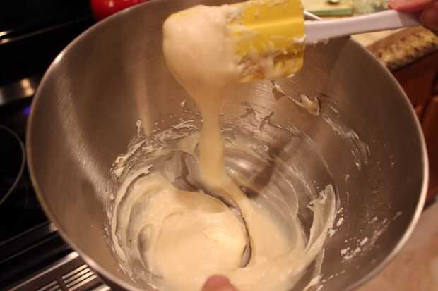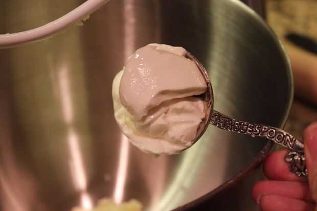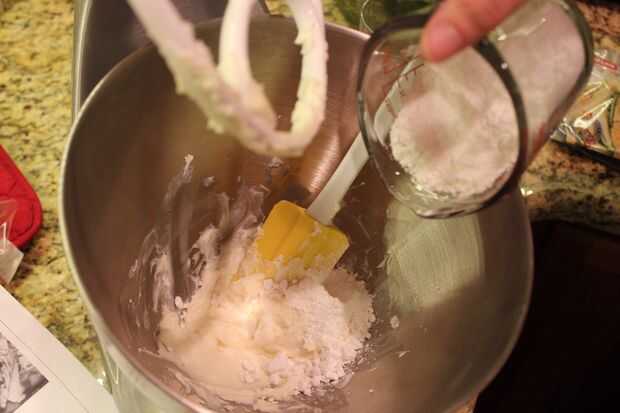 Agregar azúcar en polvo y extracto de vainilla hasta que bien mezclada y casi líquida.