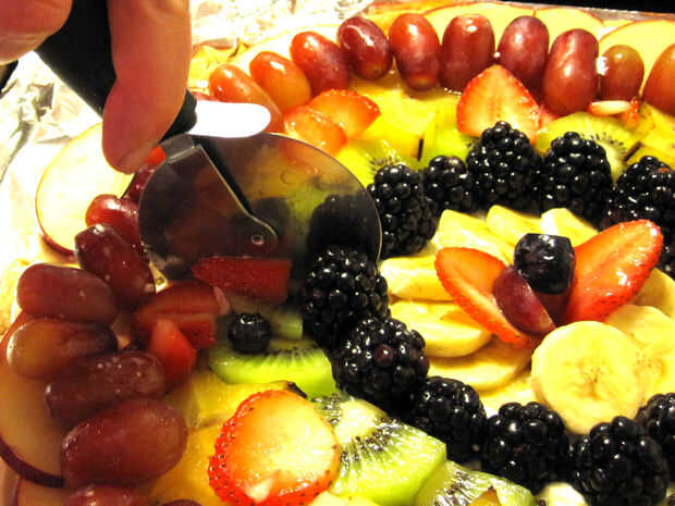 me gusta la pizza, y me gusta dulces.  Así que hace años empecé a hacer pizzas de postre!  No, no tradicionales pizzas con cosas dulces, pero lo dulce que se hace para asemejarse a una pizza!Es fácil racionalizar cómo los ingredientes de esta pizza n