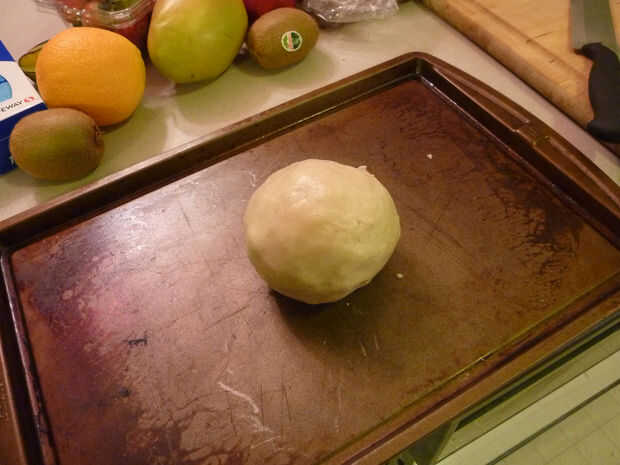Pi por día este año, decidí hacer un postre estilo Pizza π (o si quieres volver loco, un π πzza). Esta es una receta simple y adaptable que se puede hacer un número de maneras y para múltiples ocasiones.Primer paso: Hacer la masa de "pizza"Usé l
