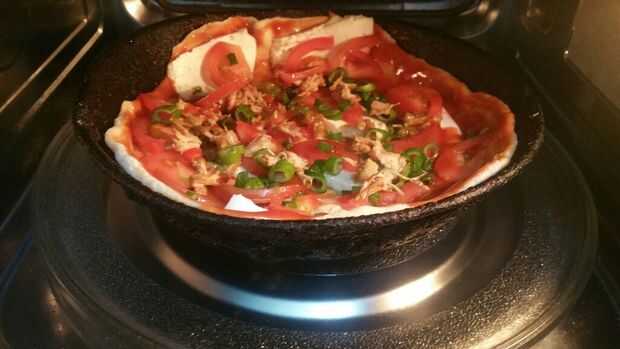 Instrucciones:-Precalentar el horno a 400 grados.-Extiende la salsa de pizza por el centro de la masa.-Cubra con cualquier ingredientes que te gusta.-Top con shredder mozzarella o su queso favorito.-Cortar rodajas perpendiculares con tus tijeras de c
