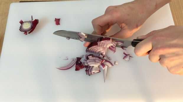 Cortar el 1/8 a 1/4 de una cebolla roja en trozos pequeños y colóquelos en una cacerola sobre fuego medio hasta que ganen un poco de color. Esto hará que su casa huele increíble y que la cebolla un poco más agradable en la boca.