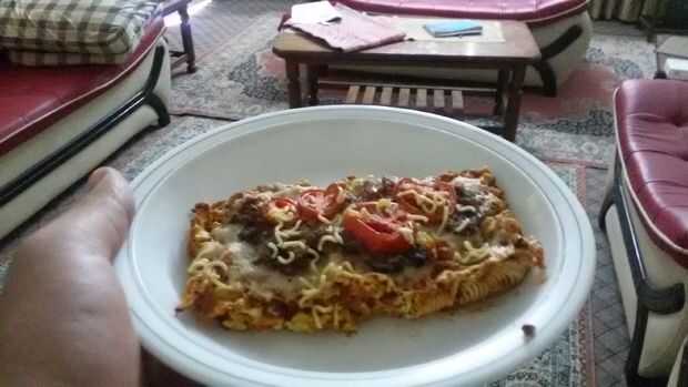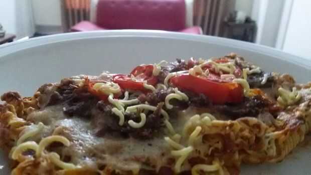 Como hacer ramen, pizzaPaso 1: Hervir el agua para 3 ~ 4 minutosPaso 2: Cuando el agua comience a hervir pone los fideos ramen en élPaso 3: Calentar la sartén antiadherente a fuego medio y añadir algún aceite vegetal. Colocar los tallarines secados e