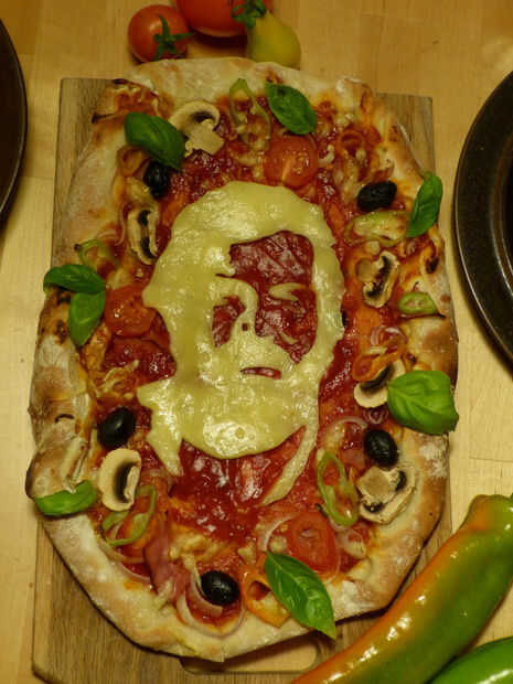 Especia de receta de pizza favorita con un personal retrato de queso!