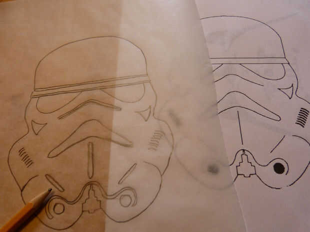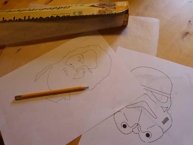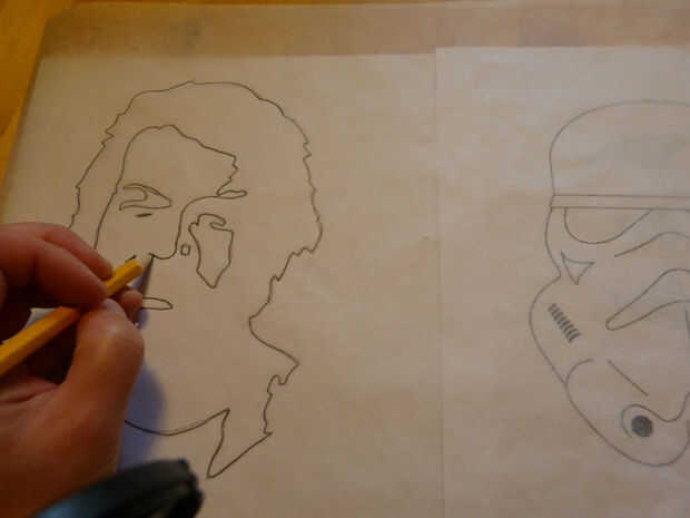 Coloque la hoja de papel de pergamino en su cuadro elegido (en mi caso de Bud Spencer y un trooper de la tormenta)