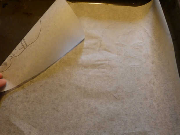 Voltear el papel de pergamino (líneas trazadas hacia abajo) y colocar en una placa para horno.