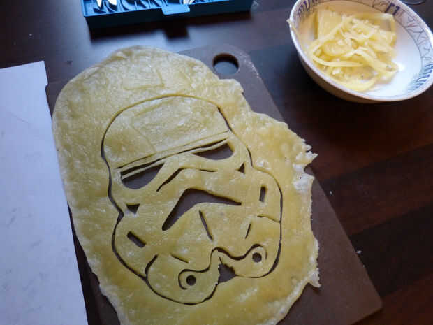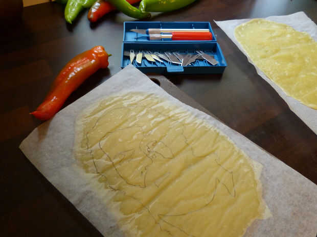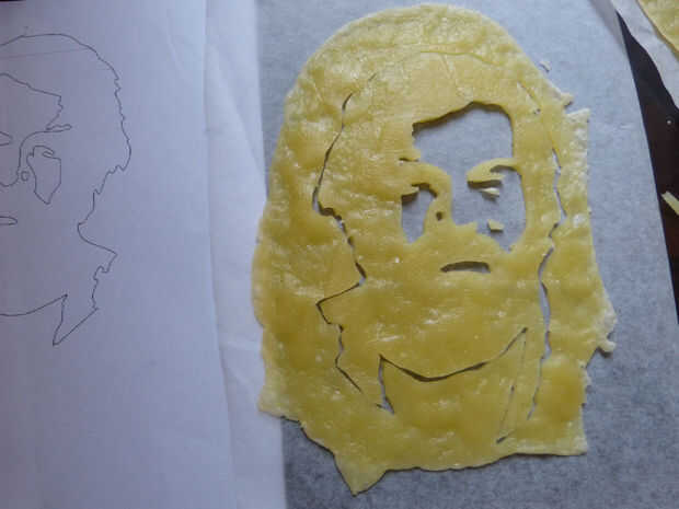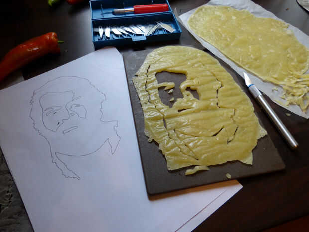 después de que se haya enfriado la hoja queso, puede comenzar a cortar el retrato.