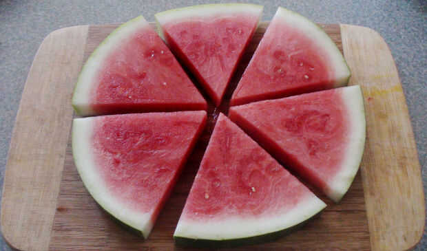 ¿Por qué no poner una vuelta de tuerca sobre el viejo plato de fruta y vestirse como una pizza?Al comer la sandía un día de verano, me di cuenta de una rebanada no miró demasiado lejos de un bollo de pizza cubierto de salsa de tomate - y así fue como