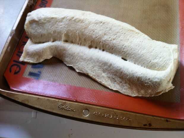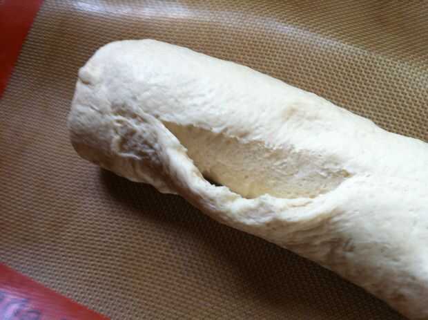 Esto puede ser un poco difícil, pero la masa tiene una costura que usted necesita para encontrar a desenrollar fácilmente... Si no lo encuentras será un verdadero lío. Desenrolle y estiramiento en la bandeja para hornear, utilizar un SILPAT para que sea agradable y crujiente en la parte inferior sin quemarse.