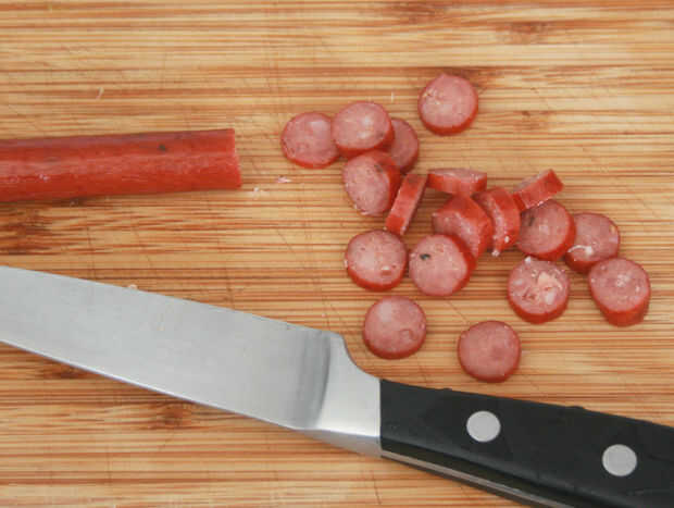 este es mi aporte a los Estados Unidos en su viaje por el oro.Paso 1: lo que se necesita Se necesita:1 bolsa1 paquete de salchichas crudas1 paquete de tocino2 salamis todo3 hamburguesas de queso... theres sólo dos aquí porque mi compañero de cuarto c