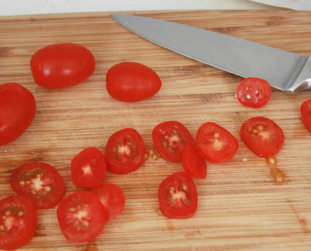 Tomar sus alimentos pequeños y hacerlos más pequeños.  Cortar todo finamente para que se cocine rápidamente y uniformemente.
