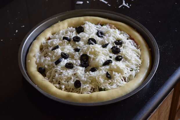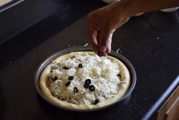 Finalmente aceitunas negras en la parte superior para un aspecto profesional.