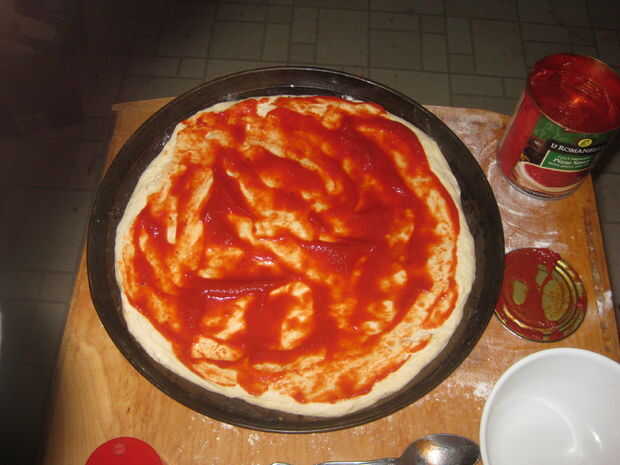 Hogar pizza hecha es genial! Pizza hecha casera fácil es mejor!Normalmente no soy un gran fan de hmp, debido a los resultados del pasado. Generalmente la gente hace 1 pizza cuadrada grande (como encaja perfectamente en la mayoría de los hornos) y pon