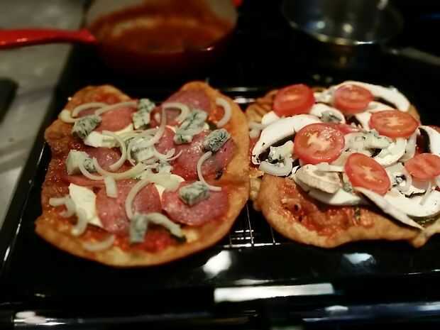 esto es una cena muy rápida, económica, y es sin duda las mejores pizzas que jamás he podido hacer en casa. Este es una básica pizza Margherita, con tomates frescos, mozzarella y albahaca, pero por supuesto puede utilizar cualquier relleno que como,