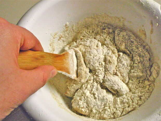 4. revolver hasta que espese, añadiendo más harina según sea necesario.