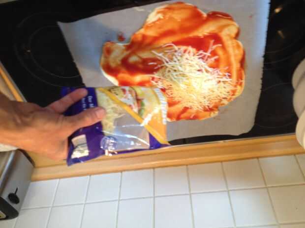 agregar una gran cantidad de queso rallado de mozzarella o pizza. no escatimes!