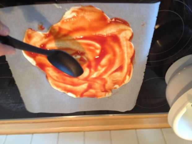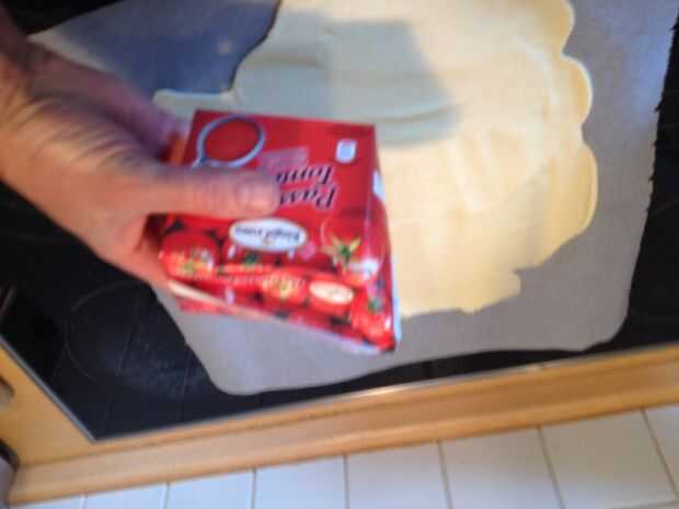 poner un poco de passata de tomate o tomates picados estañados en medio. extendió con cucharón agregar según sea necesario.
