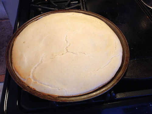 Para el registro, creo que el de las fotos es sólo un poco demasiado al horno para un par-cueza al horno. Gracioso, lo que quiere buscar es algo que casi se asemeja a la masa de pizza tradicional. Debe ser capaz de ser movido alrededor y no húmedo en el medio.