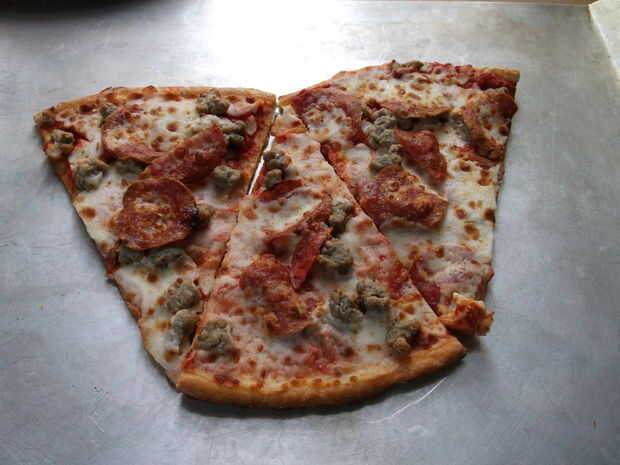 De la corteza necesita izquierda sobre pizza.  Esto puede ser pizza hiciste o entrega restos de ese partido que tuvo la noche del viernes.  Organizar la corteza en una placa para horno de manera contigua, como se muestra.  En mi caso, yo estoy utilizando las sobras de un restaurante de pizza local pintoresco conocido como Papa Johns.
