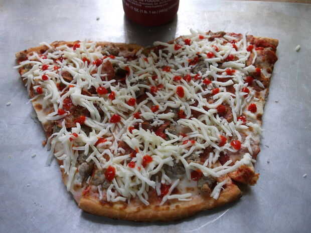 aquí está la pizza!Paso 1: ingredientes salsa siracha, ajo en polvo, orégano, aderezo italiano, pan plano cosas, queso mozzarellaPaso 2: crujientes por corteza DAT! encender la estufa a medio y voltear en el pan, hasta cripyPaso 3: hacer la salsa mez