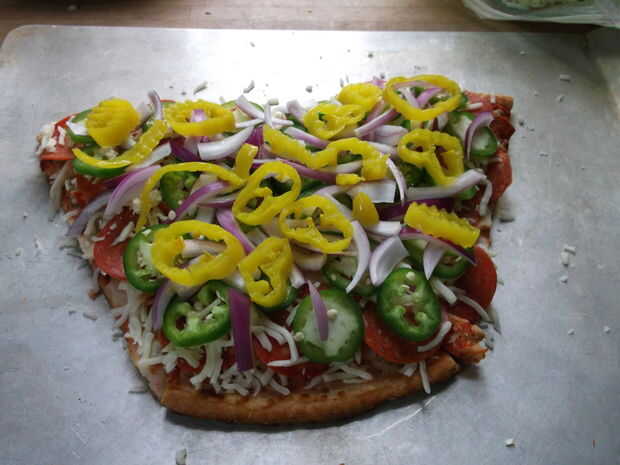 aquí está la pizza!Paso 1: ingredientes salsa siracha, ajo en polvo, orégano, aderezo italiano, pan plano cosas, queso mozzarellaPaso 2: crujientes por corteza DAT! encender la estufa a medio y voltear en el pan, hasta cripyPaso 3: hacer la salsa mez