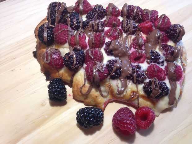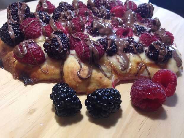 Tuve un tiempo difícil decidir sobre un nombre para esta receta. Podría ser una pizza de postre, pero también podría ser una pizza de desayuno. Como quieran llamarla, es una deliciosa pizza que es fácilmente personalizable. No es demasiado dulce, no demasiado ácida y muy cremosa cuando se caliente.