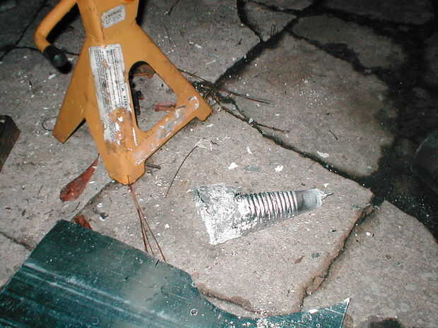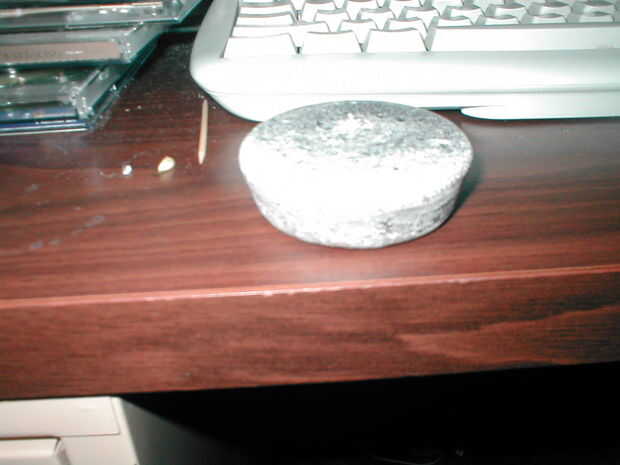 Ahora tenemos que verter, primero apague el ventilador, luego coloque los extremos de su titular crisol en los agujeros en el crisol cuidadosamente!!! Tienes la oportunidad de gravemente lastimarse aquí!!!! Levante el crisol cuidadosamente fuera del horno. Prácticamente al instante hace chisporroteo y hacer estallar sonidos de enfriar muy rápidamente. Espero que su elenco estaba cerca...