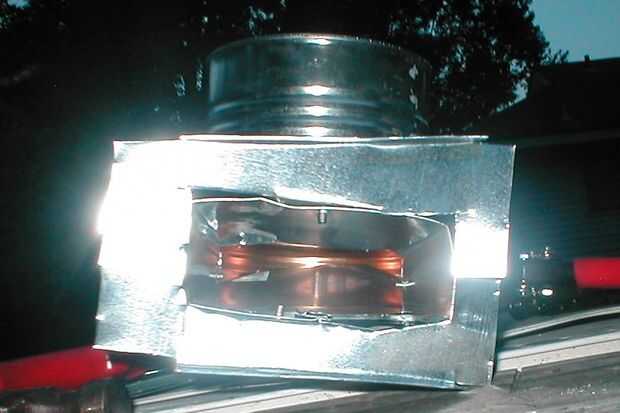 Luego usé un borde recto para dibujar en unas aletas en el interior (conducto) y el exterior (ventilador), para clavar el adaptador para conducto y cinta adhesiva en el ventilador.