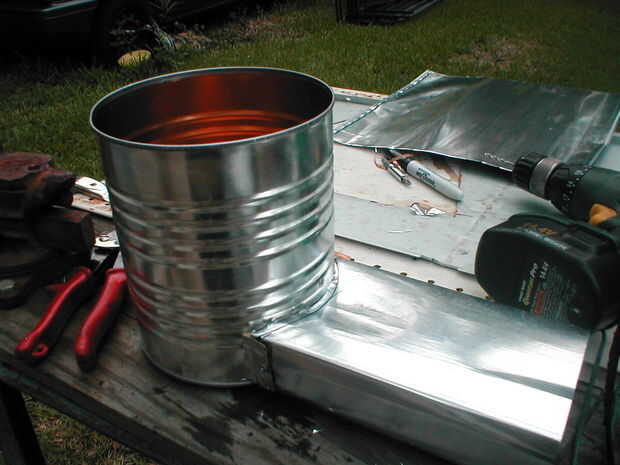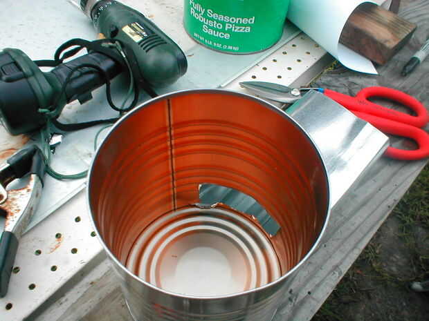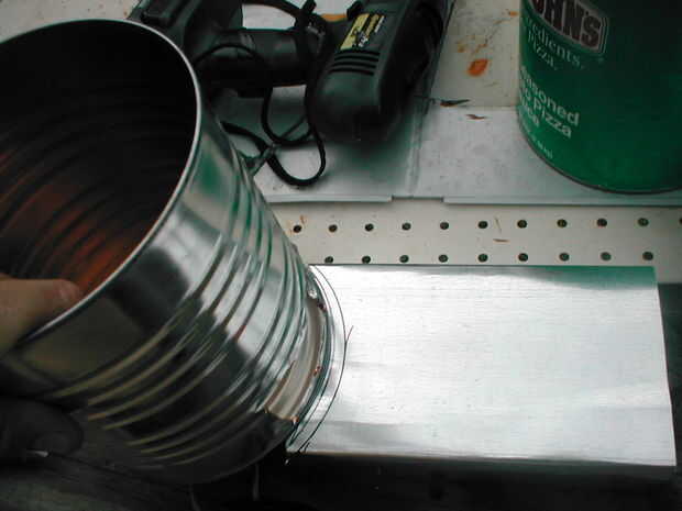 Luego corte dos aletas de los lados del agujero cortado en la can para el conducto y los dos hacia fuera curva también.