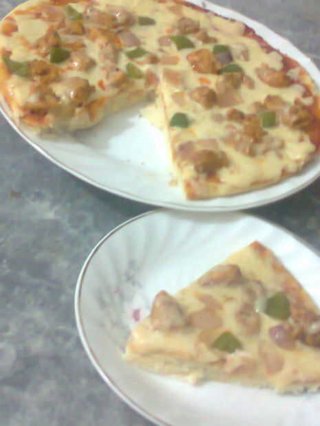 Pizza pan plano de trigo entera es fácil y rápido para hacer la receta. Su hecho como pan de trigo integral (Chapathi/roti) y después montar como una pizza. Se cuece en la estufa sin usar el horno. Reposo tiempo o preparación previa no se requiere pa