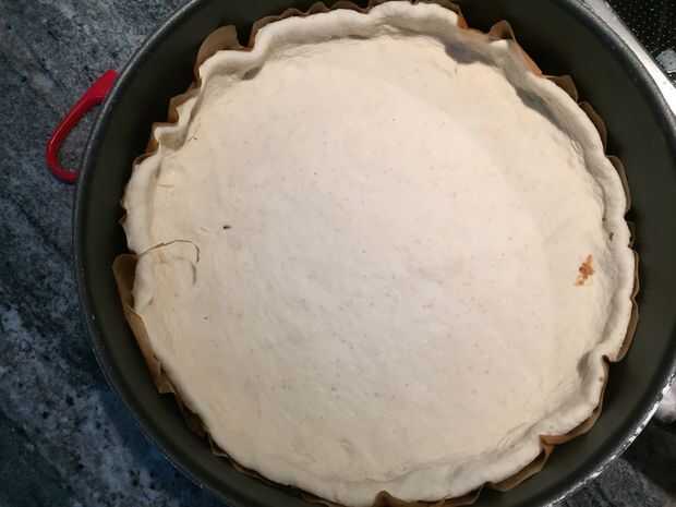 Ahora Levante esta para hornear junto con la masa y coloque en la bandeja. Los bordes se soporte verticalmente en que los lados - no te asustes.
