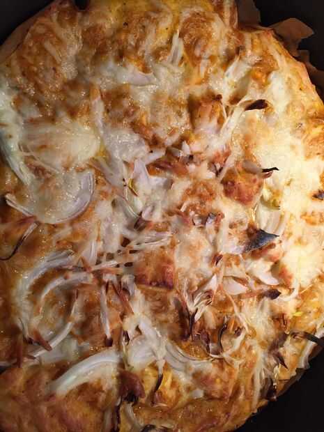 La pizza Tandoori es irresistible y acogedor. Manejar la bandeja con guantes para evitar las lesiones de calor.