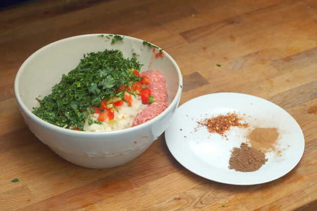 Aproximadamente cantidades iguales de los siguientes, todos finamente picada/cortada según su preferencia: