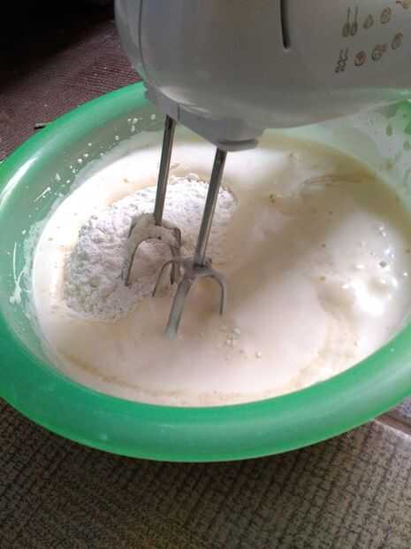 • Los huevos mezcla, sal, azúcar y 1/4 bicarbonato de Sosa en un recipiente grande hasta la masa un poco burbujeante. • Vierta la harina y el agua en la masa, mezclar con la batidora. • Cubra la masa y dejar reposar 60 minutos.