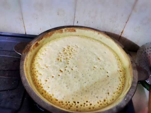 • Cuando la masa empieza a bubbly, reducir el calor otra vez, sembrar el azúcar sobre él.