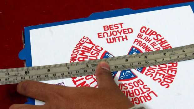 necesita sacar la regla y medir el pan de la caja de pizza,