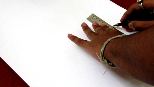 Con un lápiz dibujar el margen en el el papel de carta y corte el papel usando la navaja Xacto. En caso de no tener un tener un cuchillo xacto también se pueden utilizar tijeras del trabajo.