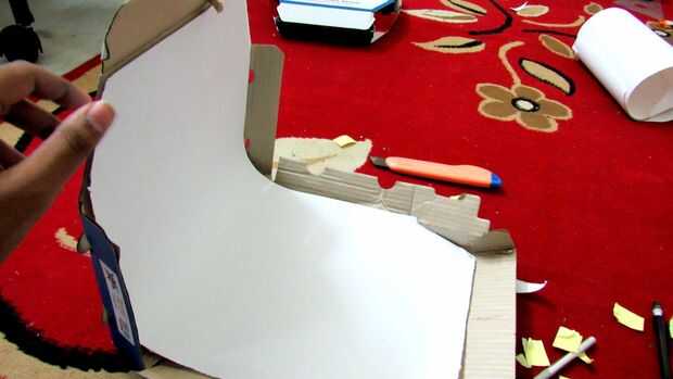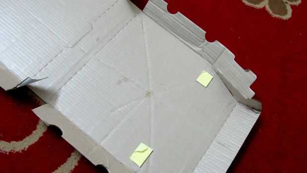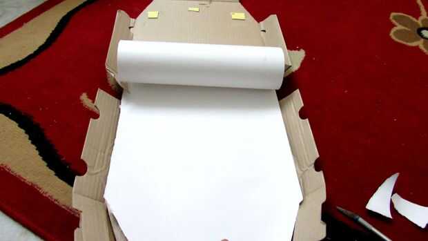 Después se une el papel de carta, corte los bordes para que eso si la caja de la pizza es como mina no cuadrado perfecto.