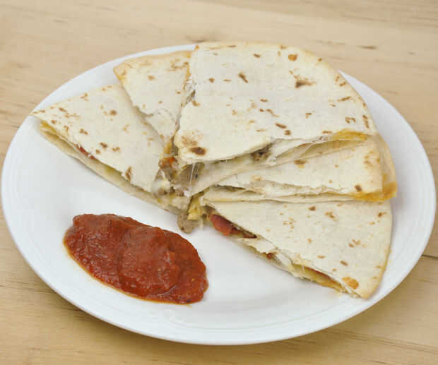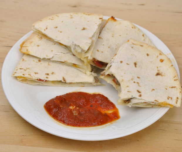 Eso es todo! Usted puede poner la salsa en el pizzadilla antes si quieres, pero creo que es divertido para introducirlo. Entonces usted puede conseguir tanto o tan poco como desee!