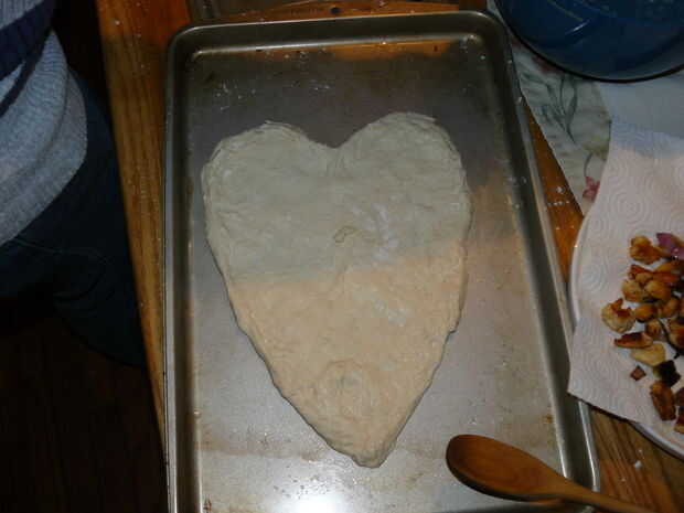 Cuidadosamente, trabajar la masa hasta que comience a parecerse a un corazón. Coloque la masa sobre una bandeja ligeramente engrasada y seguir trabajando en él hasta conseguir la masa de pizza perfecta en forma de corazón. Allí no es una ciencia exacta para esto, pero voy averiguar!
