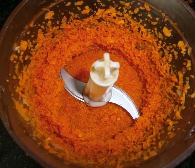 En un procesador de alimentos mezcla de zanahoria hasta que esté finamente picado.