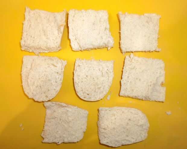 Si su pan es como el de la foto, cortar todas las piezas por la mitad como lo hice.