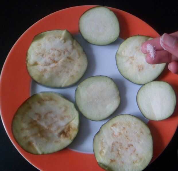 -Espolvoree sal marina en rondas de planta huevo.