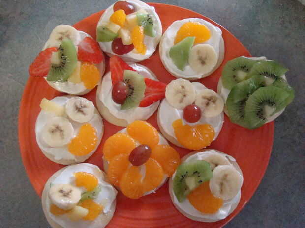 para fin de año, mi mamá decidió hacer pizza de fruta. Ella salió de la masa de galletas de azúcar y comenzó a cortar para arriba. Me preguntaba por qué ya que ella estaba haciendo una pizza y dijo que era más fácil conseguir la masa aplanada como