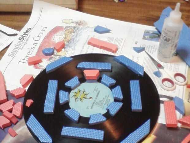 Cuando la pizza sale del horno el pan va a estar caliente! Cortada la pieza suave de la espuma y pegamento para el registro (que no le importa arruinar). El azulejo de espuma suave es capaz de soportar mucho calor y apoderará de la parte inferior de la bandeja de modo que puede colocar el pan caliente directamente en el tocadiscos cuando sale del horno y los tocadiscos será capaz de girar sin la bandeja de deslizamiento.
