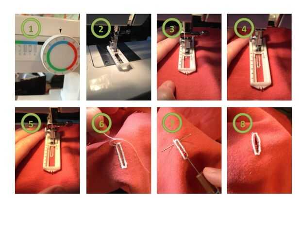 Configurar su máquina de coser para el primer ajuste del ojal (cuadro #1).