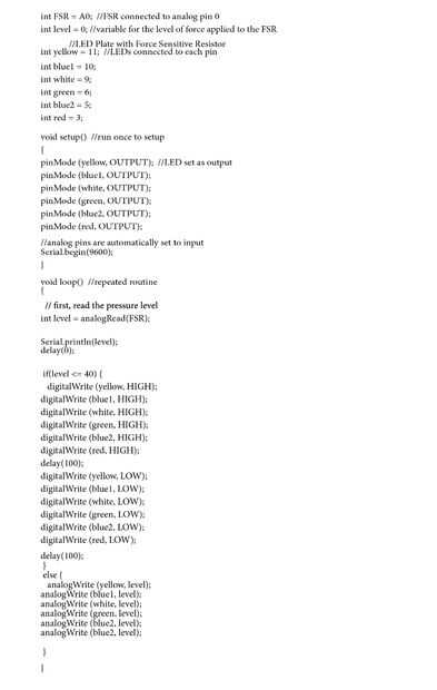 Ahora es el momento para insertar el código. Asegúrese de modificar el código para cumplir con cada puerto que utiliza para acoplamiento con los mismos números como lugar en la fila de la Arduino.