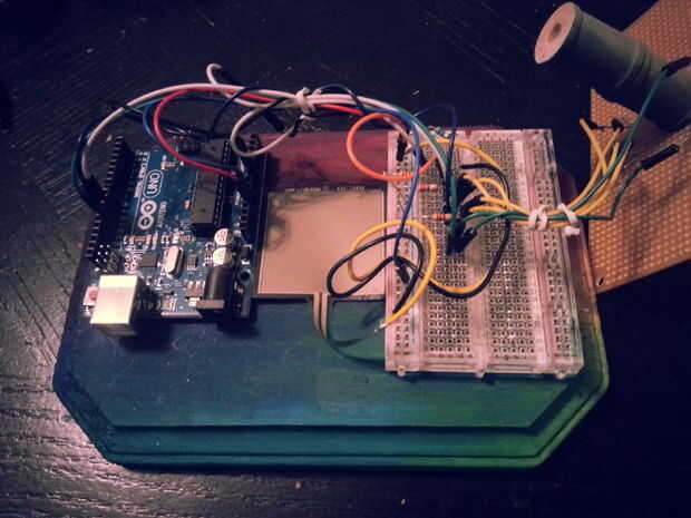 placa Arduino especialmente modificado para requisitos particulares usando sugru, con el fin de ser compatible con Lego. Sugru se coloca en la parte inferior de la base de plástico y una base de Lego conectados en él.