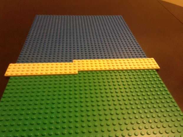 Placa base de LEGO es un poco difícil de cortar. Es demasiado duro para tijera y demasiado frágil para Sierra (y usted perderá algunos espacios). Algunos usan alambre caliente para derretir y cortar, pero es difícil de navegar y, hecho incorrectament