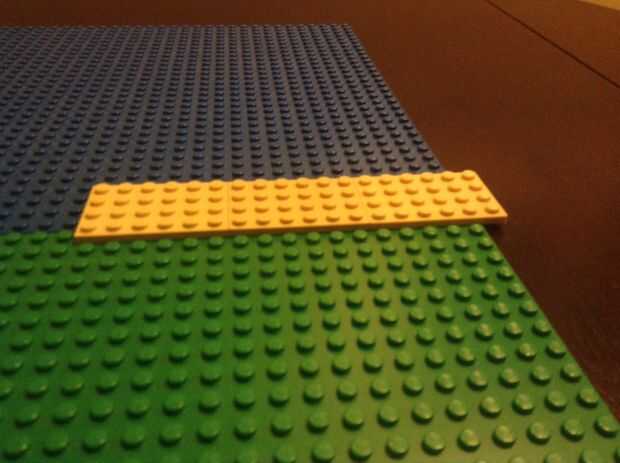 Placa base de LEGO es un poco difícil de cortar. Es demasiado duro para tijera y demasiado frágil para Sierra (y usted perderá algunos espacios). Algunos usan alambre caliente para derretir y cortar, pero es difícil de navegar y, hecho incorrectament